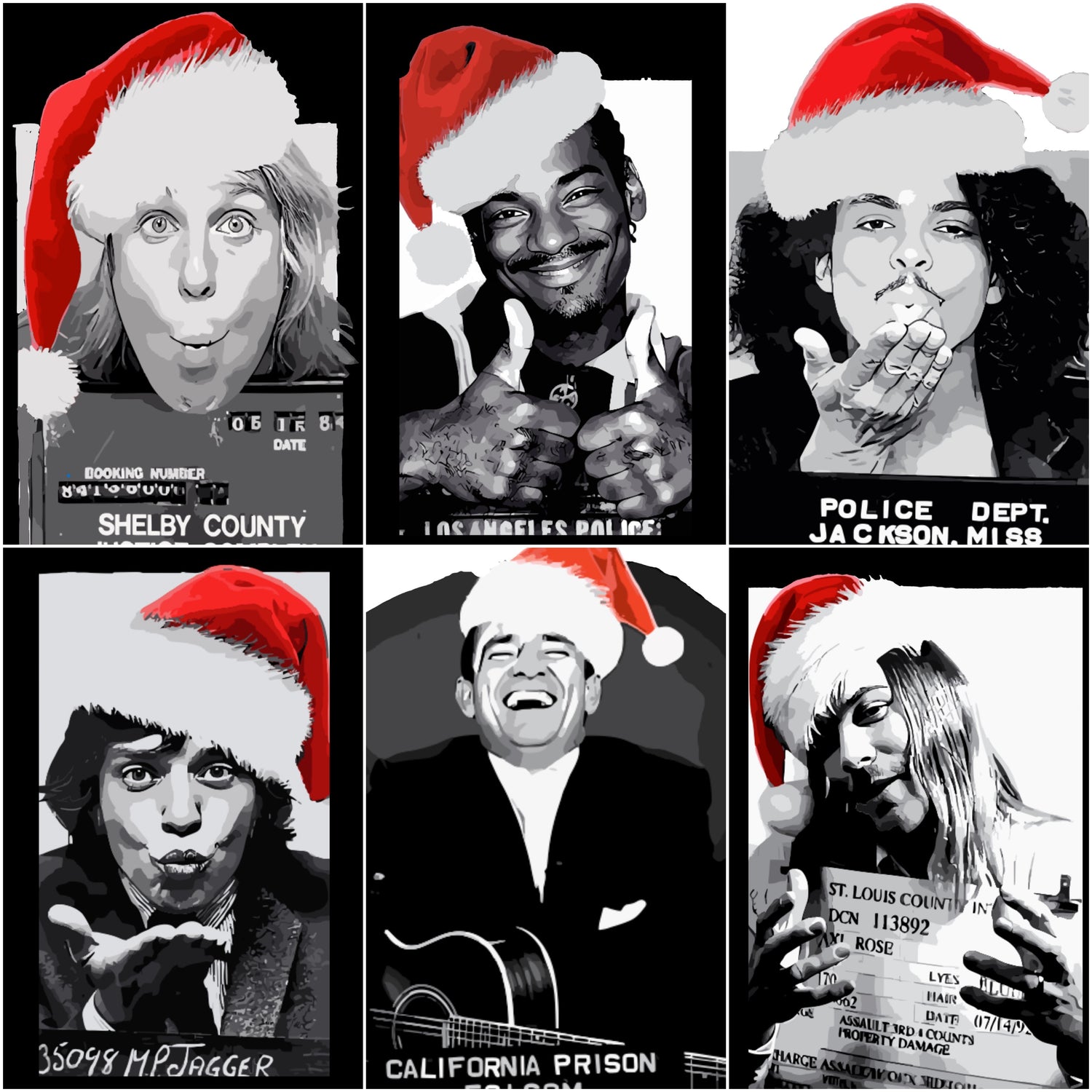 They were arrested for disturbing the peace with too much talent, style, and rock 'n' roll. This Christmas, we've posthumously pardoned them with a Santa hat and a smile. Wear the legends who were too cool for the Nice List in this exclusive, limited-run collection. Your spot on the Naughty List has never looked better.