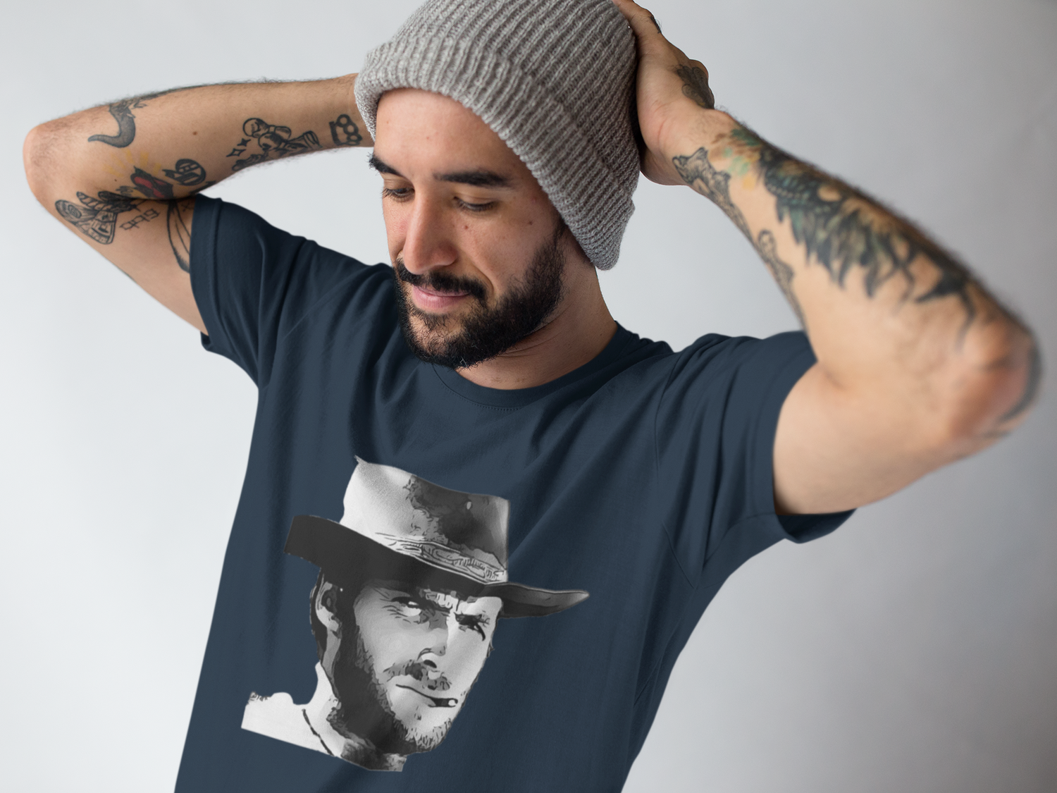 In the West, your look was your legend. This collection captures the iconic style of cinema's greatest spaghetti western. From the silent cool of Blondie to the chaotic grin of Tuco, wear the faces that defined an entire genre of cool.