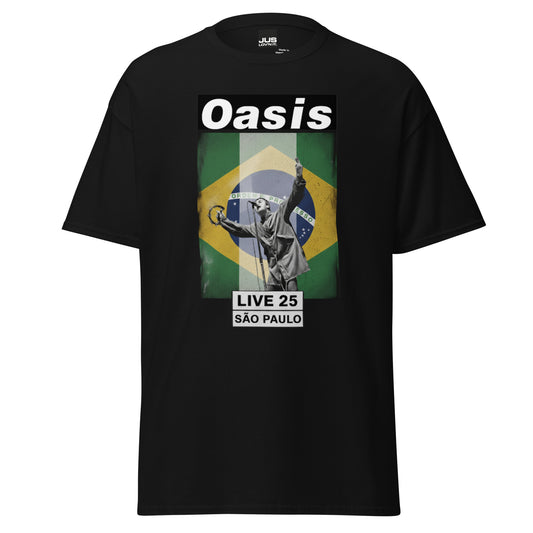 Live 25 SĂŁo Paulo Brazilian Flag Tee - Retro Oasis Brit Rock Pop Concert Unisex T-shirt